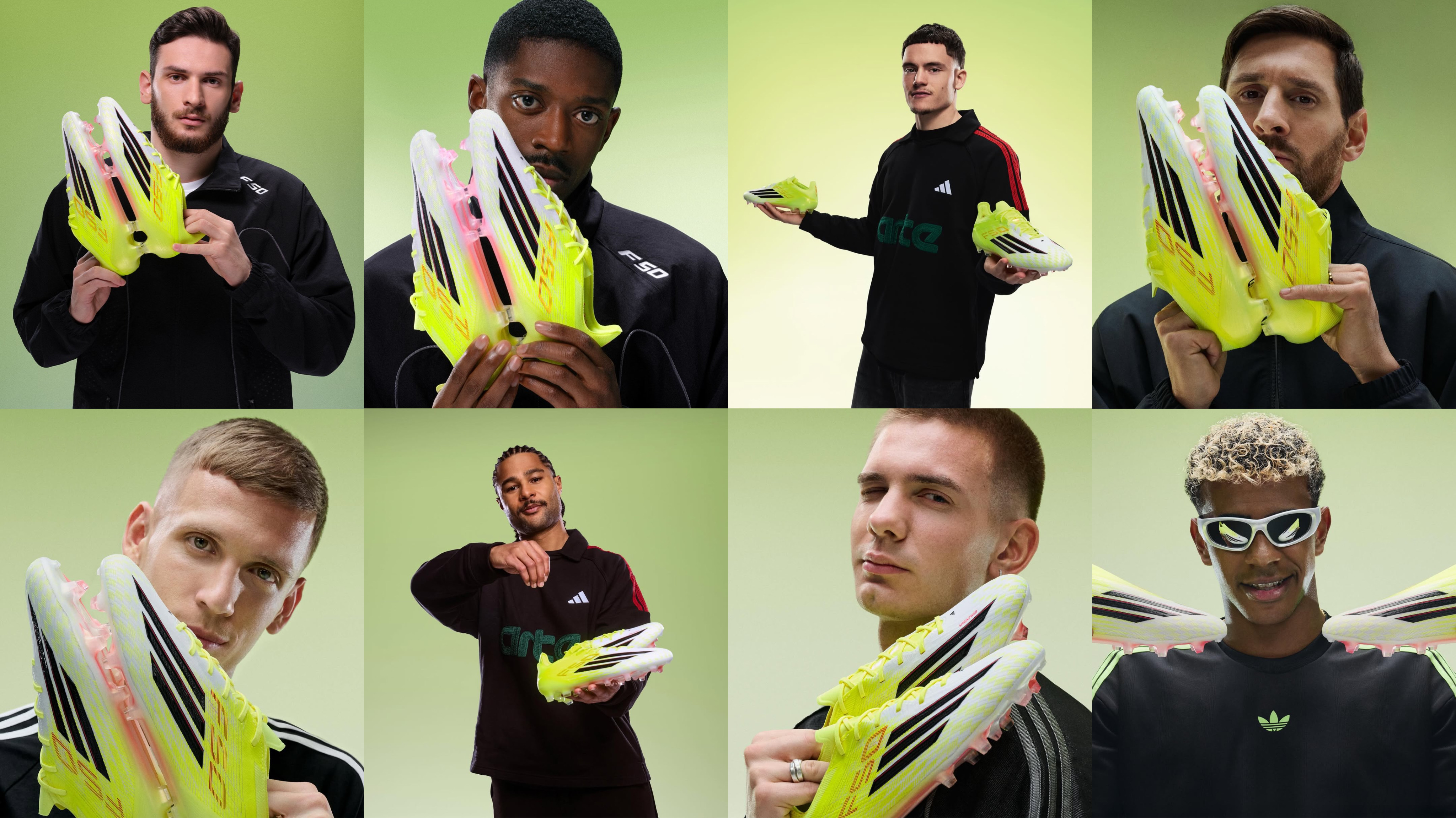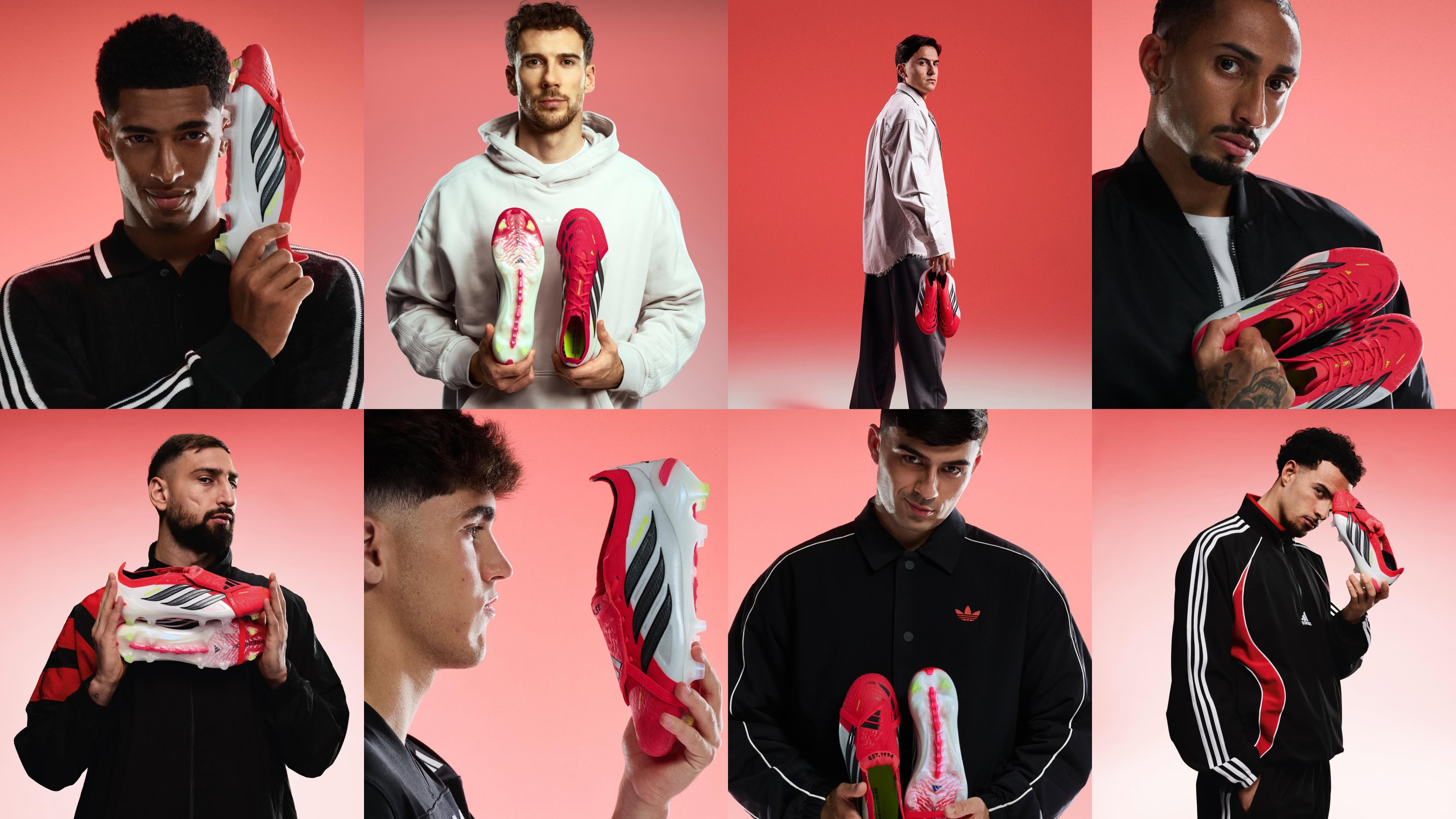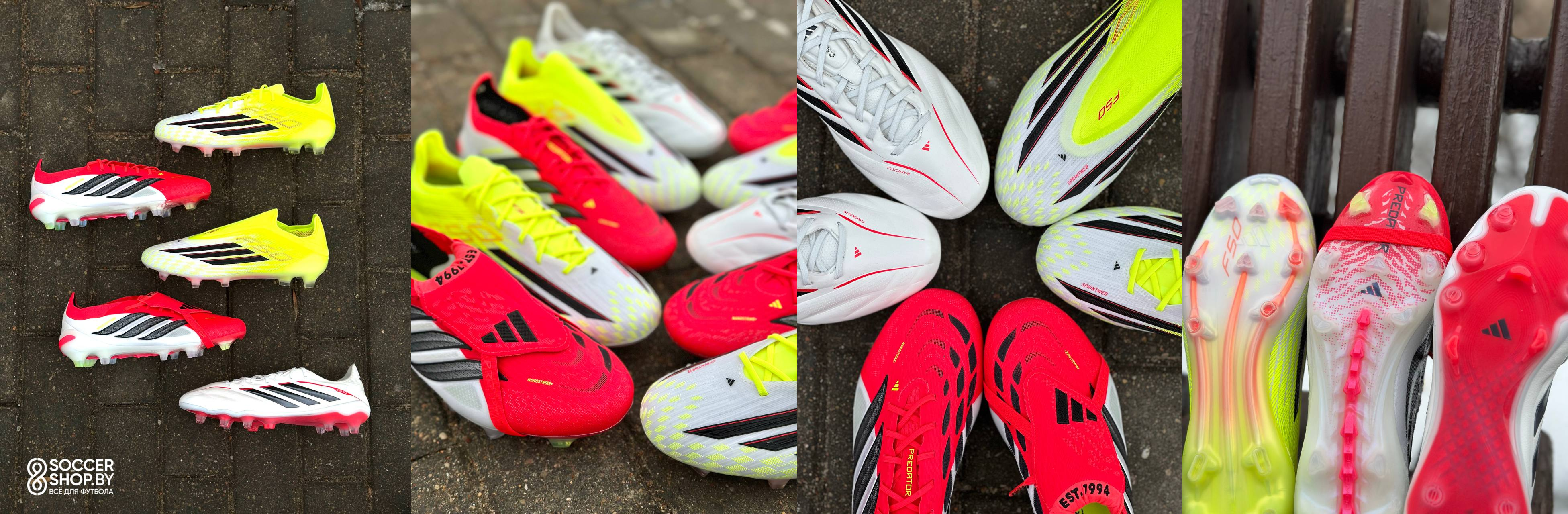 Вся коллекция выполнена в красно-желто-белых цветах. Основной упор сделан на противостояние моделей Predator и F50 – бренд запустил сильнейшую рекламную компанию по этому поводу, в которой приняли участие все топовые игроки, которые предпочитают данные модели. Так, например, на стороне F50 выступили Ламин Ямаль, Усман Дембеле, Франко Мастантуоно, Флориан Вирц, Лео Месси, Серж Гнабри, Хвича Кварацхелия и другие. Predator же выбирают Джуд Беллингем, Джанлуиджи Доннарумма, Пауло Дибала, Рафинья, Пау Кубарси, Леон Горецка и другие футболисты. Но думаем, что в этом противостоянии незаслуженно обошли вниманием еще одну пару бутс, которая вошла в данный релиз – новые Adidas Copa Pure IV.